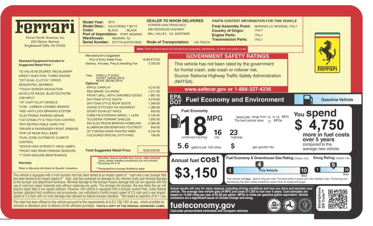 201542,920 miFerrari California T$109,999exterior colorNerointerior colorNero Available atFerrari of San Diego