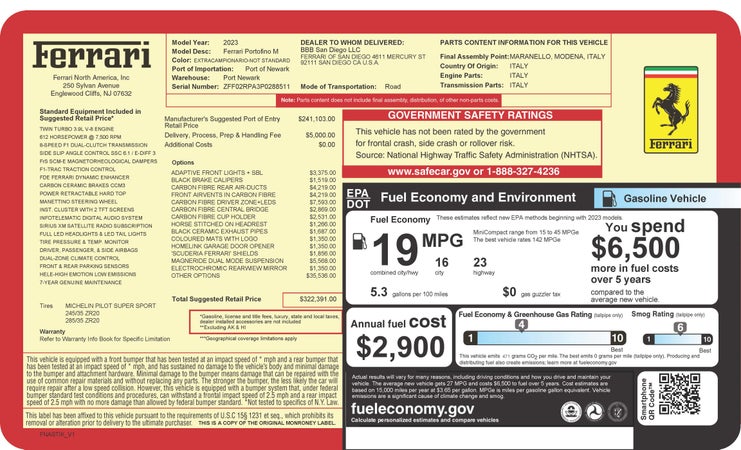 2023808 miFerrari Portofino M$314,391exterior colorRosso Portofinointerior colorNero Available atFerrari of San Diego
